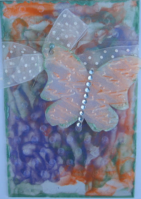 Step 4: Paint the butterfly using some cloth over the embossed areas only, this time we want to see the embossed texture, but make is only over the raised areas.