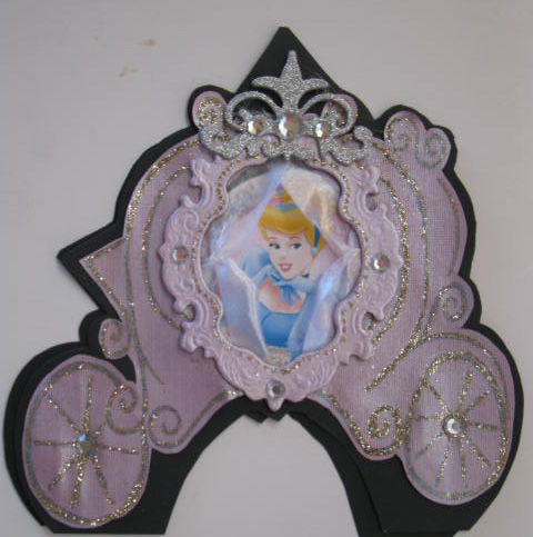I chose Cinderella as my inspiration for this challenge and I decorated her carriage with Lavendar Inspirations and silver glitter. I also painted the little notecard carriage with Lavendar and printed "Believe" using my computer.